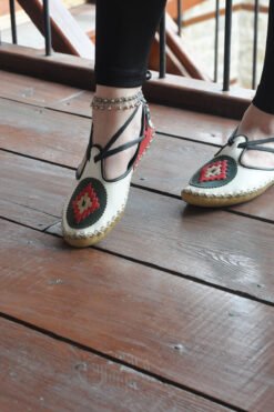 Krem Kırmızı İpli Model Desenli Çarık-IMC28