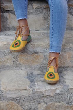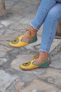 Sarı Yeşil İpli Model Desenli Çarık-IMC17